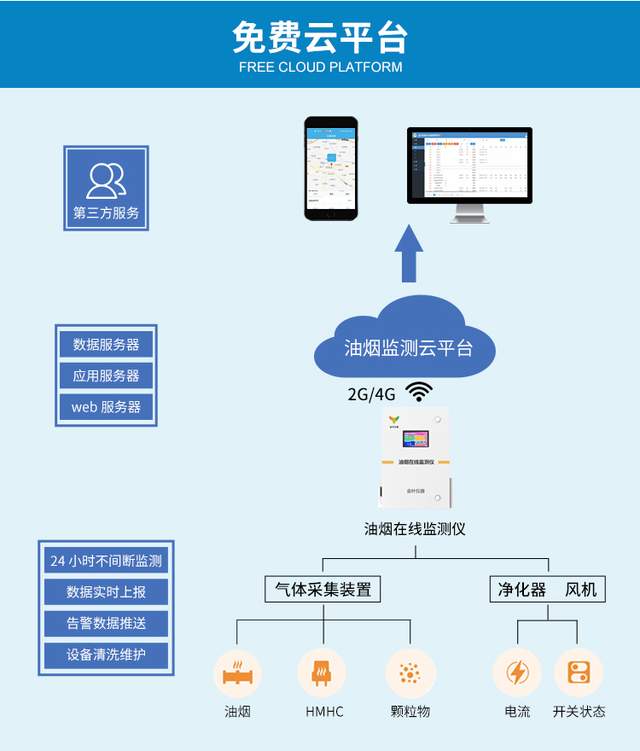 金葉儀器油煙在線監(jiān)測(cè)系統(tǒng)網(wǎng)絡(luò)平臺(tái)采用BS架構(gòu),結(jié)合網(wǎng)絡(luò)地理信息系統(tǒng)配備油煙監(jiān)測(cè)設(shè)備,實(shí)時(shí)監(jiān)測(cè)點(diǎn)位信息及油煙狀況。此系統(tǒng)平臺(tái)具備實(shí)時(shí)數(shù)據(jù)監(jiān)測(cè)、狀態(tài)反饋、數(shù)據(jù)查詢與管理、歷史數(shù)據(jù)查詢、遠(yuǎn)程控制、用戶權(quán)限管理、基礎(chǔ)信息管理等功能。